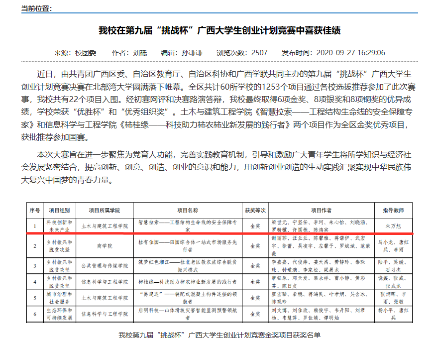 支部成员参与项目获得第九届“挑战杯”广西大学生创业计划竞赛区赛金奖