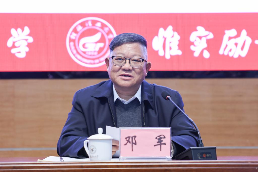 一年春作首,万事行为先。邓军表示,过去一年,全校上下在学校党委领导下,勠力同心、克服困难、团结奋斗,干成了许多大事、要事,迈出了加快发展高质量发展新步伐,达到了高水平理工大学建设新高度,谱写了“出彩桂工”新篇章,为未来学校事业发展奠定了更加坚实的基础。他号召全校上下要更加紧密地团结在以习近平同志为核心的党中央周围,继续拿出“敢教日月换新天”的气概,鼓足“不破楼兰终不还”的劲头,增强攻坚克难的勇气、敢闯敢试的锐气、蓬勃向上的朝气、加力加压的志气,以思想的大解放、改革的新突破、创新的新成果,不折不扣地完成好学校加快发展高质量发展目标任务,为加快建设高水平理工大学、谱写中国式现代化广西篇章而不懈奋斗!一起向着胜利的方向出发,邂逅十里春风,奋进新的征程,建功伟大时代!