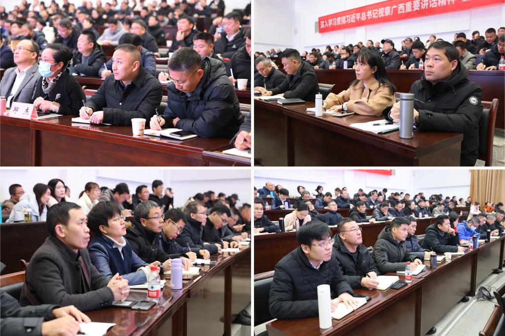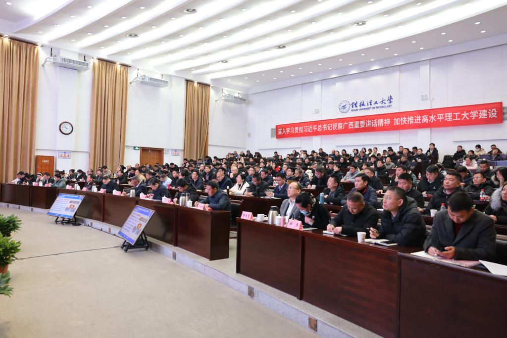 王敦球强调,2024年,全校上下要拿出“开年就开跑”的使命感,增强“起步即冲刺”的精气神,进一步解放思想,释放抢抓机遇的活力,在新时代新征程的历史方位中找准桂工定位;进一步创新求变,开拓鼎故革新的锐气,在新时代新征程的历史使命中展现桂工担当。在提高站位、对标对表、善谋善为上更加自觉,对深入学习贯彻习近平总书记视察广西重要讲话精神奋力谱写中国式现代化广西篇章的工作部署进行“再对标”,对学校下一阶段发展目标认识进行“再深化”,对“九个桂工”和“强院兴校”行动任务进行“再细化”,对实现今年各项工作高质量开局进行“再动员”。要牢牢把握狠抓落实、真抓实干这一基本要求,以“开年即开战”的冲锋姿态,奋力书写学校高质量发展新篇章,推动高水平理工大学建设再上新台阶!