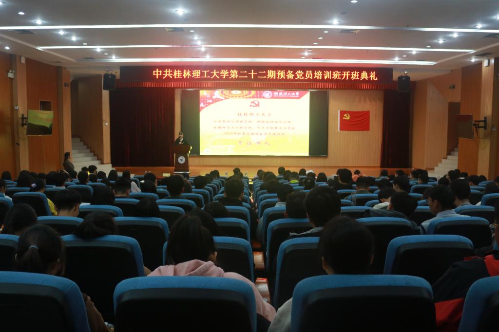 为深入学习贯彻习近平新时代中国特色社会主义思想,进一步提高党员发展质量和预备党员党性修养,按照学校党委党校的工作安排,11月15日,中共beats365亚洲版委员会党校公共管理与传媒学院、测绘地理信息学院、环境科学与工程学院、艺术学院联合分党校2021年秋季学期预备党员培训班开班典礼在雁山校区图书馆报告厅举行。开班典礼由公共管理与传媒学院党校教务员时香丽主持,学院党委书记陆平,党委副书记杨晓,测绘地理信息学院党委书记李景文,艺术学院党校教务员邵欣悦出席,联合分党校203名预备党员参加。