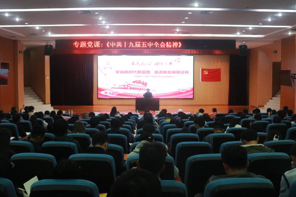 开班典礼结束后,由公共管理与传媒学院党委书记陆平老师为学员们作题为《十九届五中全会精神》的专题党课。陆平老师深刻阐述了十九届五中全会的主要内容和会议精神,深入浅出,内容丰富。他结合主题内容以具体实际生活为例,其幽默风趣的言辞,深刻独到的见解,感染着每一位学员,使得现场掌声连连。