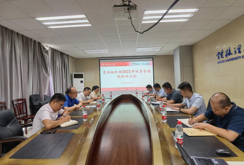 为进一步贯彻落实学校党委行政工作部署,加强统筹谋划,推动部门各项工作高质量发展,8月30日上午,党委组织部在雁山校区行知楼B301会议室召开2022年秋季学期战略研讨会。党委组织部全体干部参加,会议由学校党委常委、组织部部长唐壮东主持。