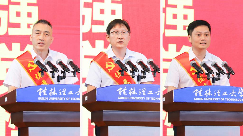 先进基层党组织代表、全国及全区高校样板党支部、化学与生物工程学院化学与化工教工党支部书记何方同志,优秀共产党员代表、南宁产教融合基地主任胡振光同志,优秀党务工作者代表、武装部部长(保卫处处长)、机关党委武装保卫党支部书记张瑞同志作为先进典型代表发言,从不同角度展示了各级党组织和广大党员干部坚持党的领导,充分发挥基层党组织战斗堡垒作用和党员先锋模范作用,服务学校高质量发展的生动实践。