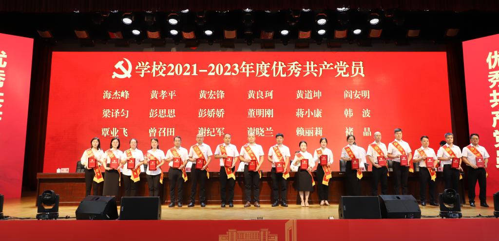 学校党委常委、纪委书记韦学敏宣读《beats365亚洲版关于表彰2021-2023年度学校先进基层党组织、优秀共产党员和优秀党务工作者的决定》。会议授予学校100名同志“优秀共产党员”称号,授予学校20名同志“优秀党务工作者”称号,授予学校20个基层党组织“先进基层党组织”称号。