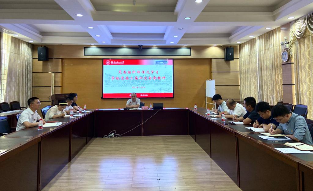 7月8日,党委组织部在屏风校区教十楼309会议室召开工作会议,传达学习学校第三届党委第六次全体(扩大)会议精神。会议由学校党委常委、组织部部长唐壮东同志主持,党委组织部全体干部参加。