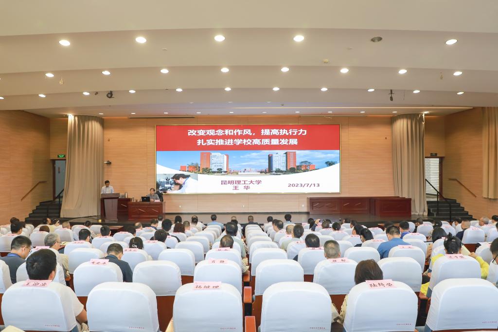 在全党上下深入开展学习贯彻习近平新时代中国特色社会主义思想主题教育,深入学习贯彻党的二十大精神,以满腔热忱奋进新征程、建功新时代之际,7月15日—19日,学校在昆明理工大学举行“学习新思想 奋进新征程 实现新发展”2023年领导干部素质能力提升专题培训班。学校党委书记邓军,党委副书记、校长王敦球,党委副书记吴志强,副校长王玫,纪委书记韦学敏,总会计师曾繁荣出席培训班。校党委常委唐壮东、叶昊、邱杰,党委委员、校长助理张成龙,党委委员、校长助理罗盛锋,校长助理潘旦光参加培训班。昆明理工大学党委书记唐家华出席开班式和研讨教学会,党委副书记、校长王华为学员作主题报告,党委副书记蔡金红、副校长王启梁、副校长牛昱宇参加教学研讨会,党委副书记降富楼主持开班式,副校长潘学军作了专题报告并出席结业式。学校二级部门、二级学院负责人参加培训。昆明理工大学对口部门和学院负责人参加研讨教学会。