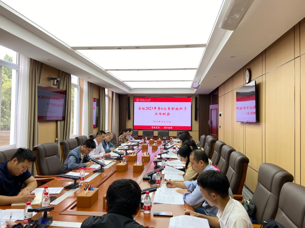 10月13日,学校党委组织部在屏风校区办公楼第一会议室召开2023年第6次专职组织员工作例会,学校党委组织部副部长黄敬秀出席并主持会议,学校党委党校办公室、组织部组织科干部以及各二级党委专职组织员参加会议。