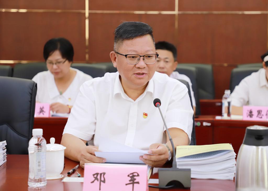 学校党委书记邓军汇报学校全区党建工作示范高校创建情况并作表态发言
