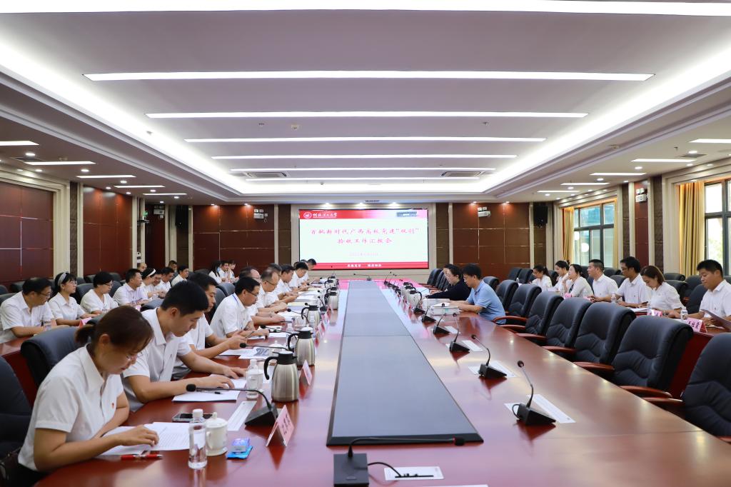 根据自治区党委教育工委关于开展首批新时代广西高校党建“双创”验收工作安排,9月21日下午,由广西交通职业技术学院党委组织部部长、统战部部长满莹莹担任组长,广西大学动物科学技术学院党委书记韦小强、玉林师范学院党委组织部副部长区茵担任成员的第五验收小组一行3人,对我校党建工作示范高校、2个标杆院系、4个样板支部等7个首批新时代广西高校党建“双创”项目进行验收和指导。学校党委书记邓军,党委常委、纪委书记韦学敏,党委常委唐壮东、叶昊,校长助理张成龙,我校示范校创建领导小组组成部门主要负责人,标杆院系党委书记、副书记、组织员,样板支部所在学院党委书记、样板支部书记和副书记出席参加验收会议。会议由韦学敏主持。