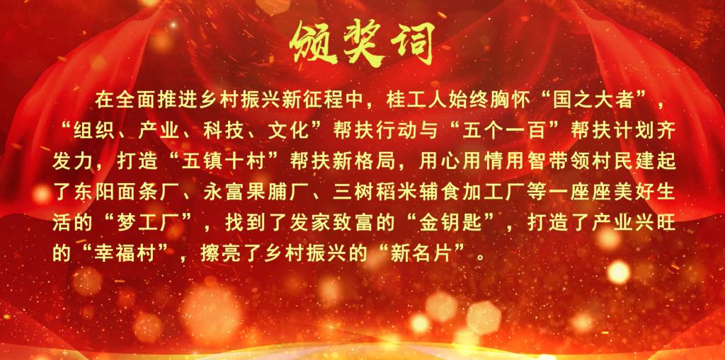 2023年,全体桂工人始终胸怀“国之大者”,以更强政治自觉、更高责任要求、更实帮扶举措,扎实开展“组织帮扶、产业帮扶、科技帮扶、文化帮扶”四大专项行动,创新实施“五个一百”专项计划,助力帮扶地区党建根基更加坚实、产业发展更加兴旺,助力帮扶群众奋斗精神更加昂扬、美好生活更加殷实。8名驻村(县)队员、44个单位部门、全体师生员工,合力奏响了帮扶乡村振兴的桂工“同心曲”“奋进歌”。学校产业帮扶做法成效入选教育部第六届精准帮扶典型项目,荣获全区乡村振兴驻村帮扶“先进后盾单位”,获评全区定点帮扶考核高校第一名,获桂林市驻村工作队员和选派单位捆绑考评“一等”等次(桂林高校唯一)。
