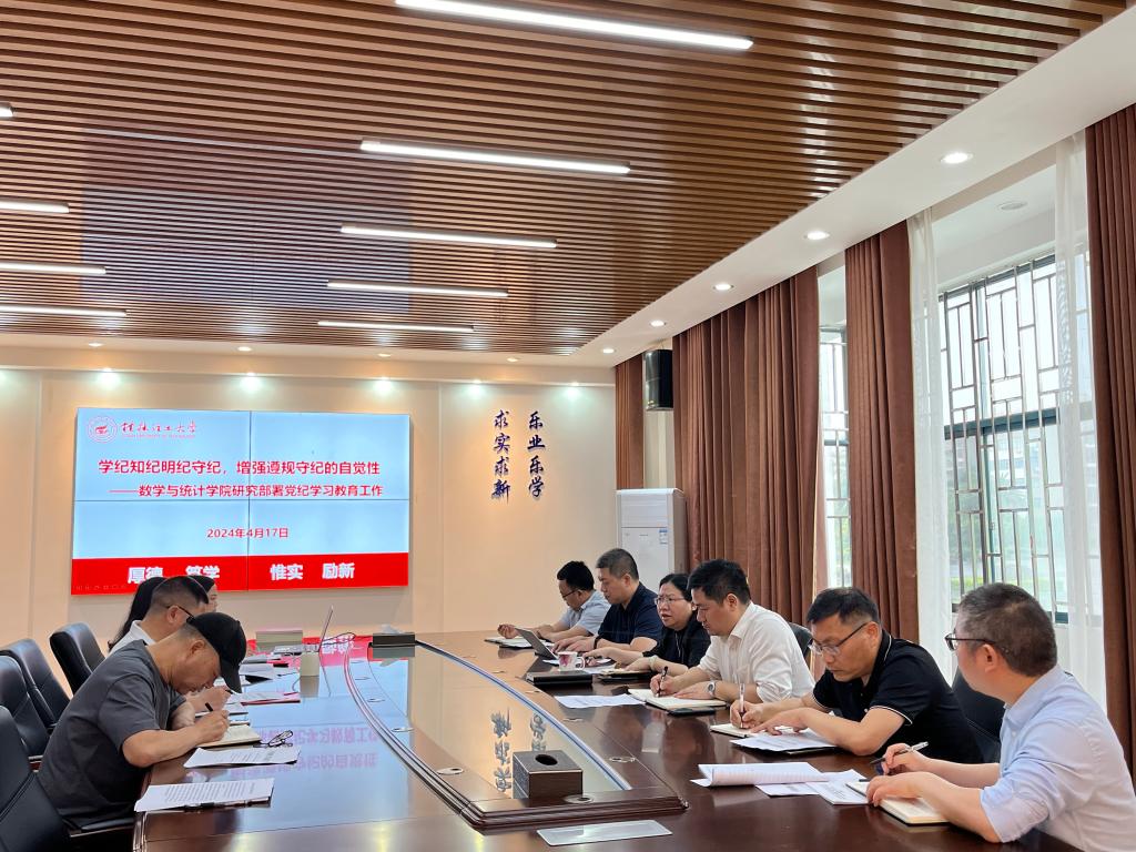 4月17日,数学与统计学院党委召开党纪学习教育工作部署会暨读书班开班仪式,深入学习贯彻习近平总书记关于党纪学习教育的重要讲话和重要指示精神,落实学校党纪学习教育工作部署会精神,部署学院党纪学习教育。当天上午,学院党委党纪学习教育读书班开班,以加强党纪学习教育,提升学院师德师风作为第一阶段主题开展相关理论学习和专题研讨。学院制定了《数学与统计学院党支部开展党纪学习教育工作推进安排》,指导支部通过“三会一课”、主题党日等多种形式主动跟进学;学院党员领导干部深入所在党支部结合近年来违反师德师风、违纪违规等典型案例,开展纪律党课专题讲授推进学。全院形成了全员参与、人人学纪的浓厚氛围。
