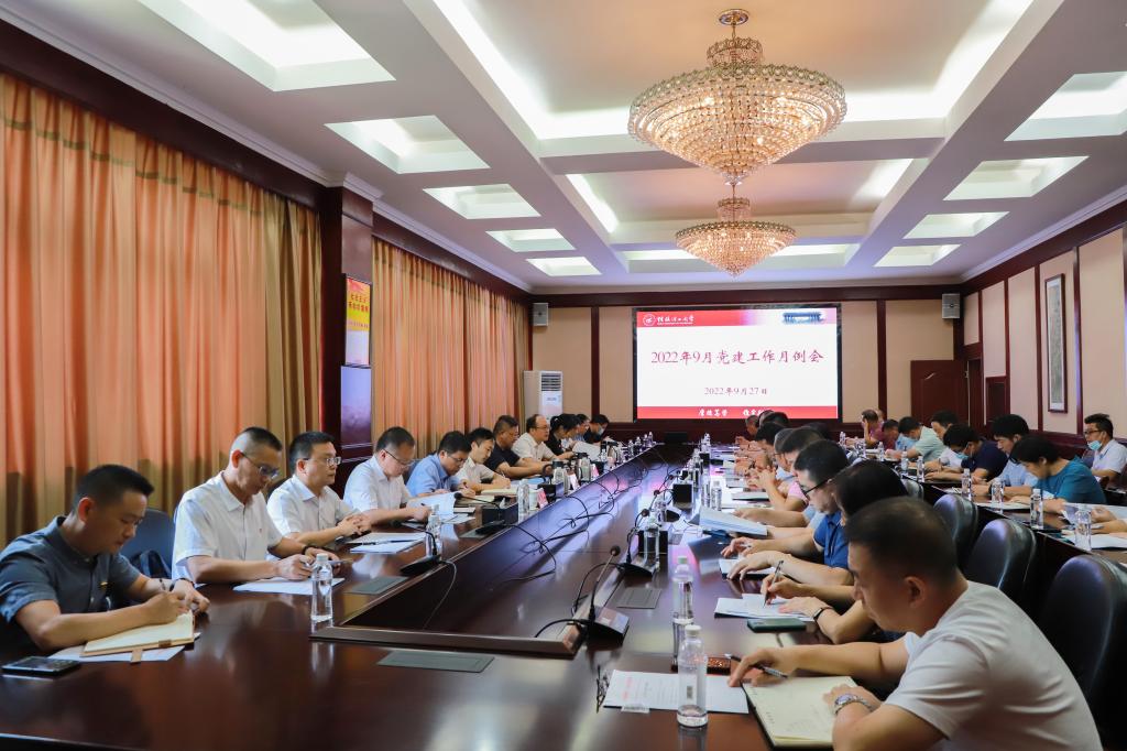 9月27日上午,我校在屏风校区教八楼三楼会议室召开党建工作月例会。学校党委书记邓军主持会议并讲话。党委常委、组织部部长唐壮东、宣传部部长叶昊、统战部部长邱杰,党委委员、校长助理、教师工作部部长辛立章,党委职能部门主要负责人、各二级党组织书记参加会议。