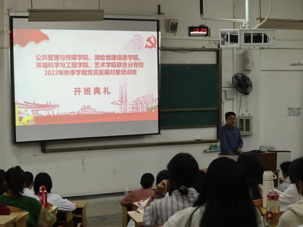 2022年11月8日,beats365亚洲版公共管理与传媒学院、测绘地理信息学院、环境科学与工程学院、艺术学院联合分党校2022年秋季学期党员发展对象培训班开班典礼在05101多媒体教室举行。管媒学院党委副书记杨晓、测绘学院党委副书记周明权以及各学院党校教务员出席了本次培训开班典礼,典礼由管媒学院教务员时香丽主持。