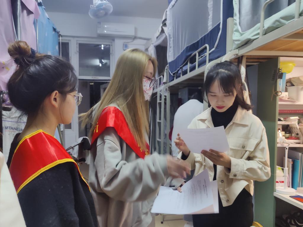 本次宿舍走访活动不仅帮助学生端正了学风、考风,强化了同学们诚信考试的信念;也展现了党员“从群众中来到群众中去”的精神力量,让党员同志的雷锋精神再新时代大学校园绽放出更加璀璨的光芒,让管媒学子真切感受到了来自学院的关心。愿所有的管媒学子都能成为“眼中有光”、“心中有爱”、“肩上有责”“手上有招”“脚下有路”的新时代好青年。