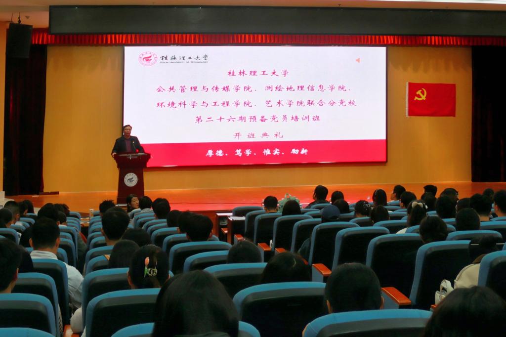 为深入学习贯彻习近平新时代中国特色社会主义思想和党的二十大精神,提高预备党员的思想觉悟,强化党性修养,2023年11月23日,beats365亚洲版公共管理与传媒学院、测绘地理信息学院、环境科学与工程学院、艺术学院联合分党校2023年秋季学期预备党员培训班开班典礼在图书馆报告厅举行。开班典礼由公共管理与传媒学院党校教务员时香丽主持,学院党委书记陆平,党委副书记杨晓,环境科学与工程学院党校教务员杨平平,艺术学院党建工作负责老师李万辉出席,联合分党校193名预备党员参加。