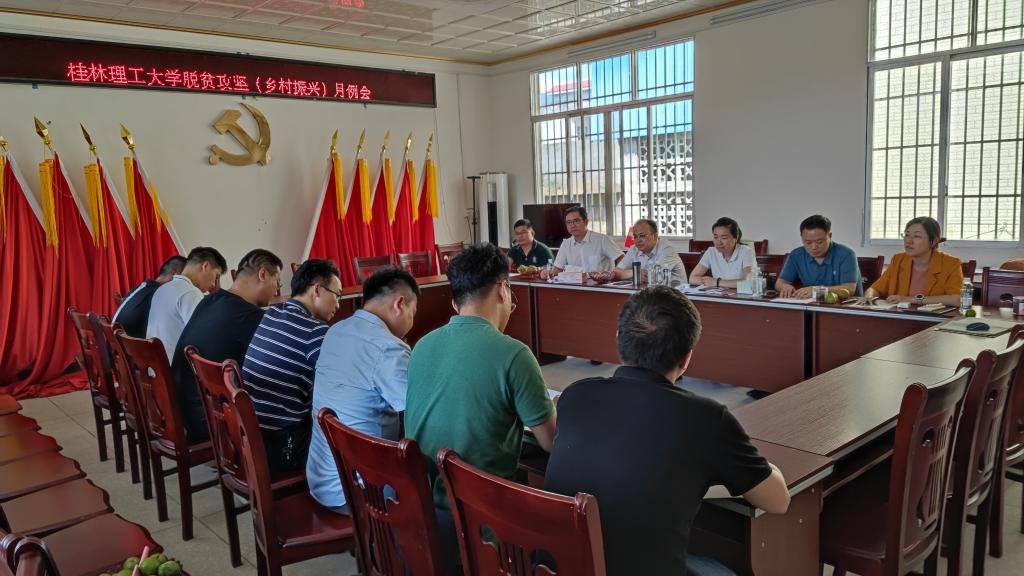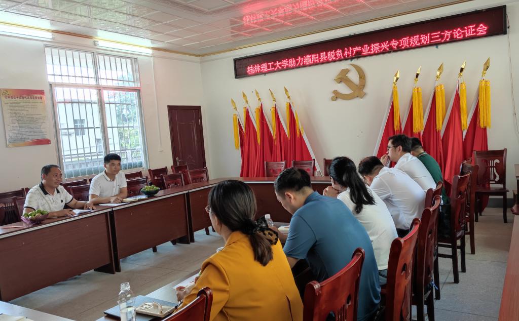 7月12日下午,学校乡村振兴办在灌阳县新街镇永富村召开助力灌阳县脱贫村产业振兴专项规划三方论证会及乡村振兴工作队例会。学校党委常委、组织部部长、乡村振兴办公室主任唐壮东,党委常委、统战部部长邱杰,广西驻村工作队灌阳县工作队队长谢小军,学校组织部、乡村振兴办有关负责人出席会议,学校派驻灌阳县脱贫攻坚(乡村振兴)工作队员、帮扶村村两委干部参加会议。