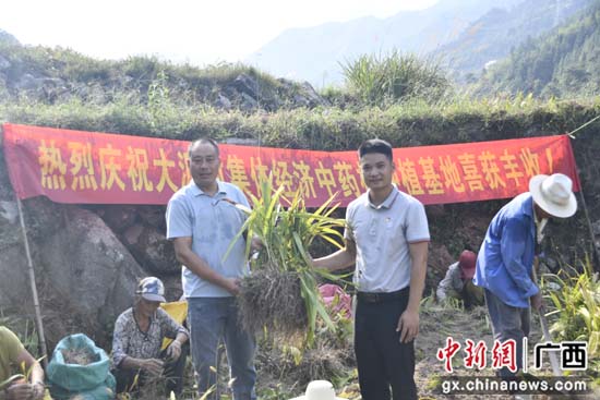 中新网广西新闻9月23日电(杜兴发)眼下,正是中药材白芨的收获时节。在广西桂林市灌阳县大源村集体经济中药材种植基地里,锄头挥舞,分拣除土,装载上车、农户们采挖白芨,忙得热火朝天,处处洋溢着丰收的喜悦。