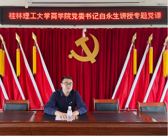 一行人首先来到灌阳县顺溪村村委。商学院党委书记白永生以“中国共产党对农民的深厚情怀”为主题,从“中国共产党成立以来始终把农民的美好生活作为奋斗的主要目标”、“习近平总书记最牵挂最放心不下的就是农民的发展”、“党的二十大对新时代三农工作作出新的战略部署”讲授专题党课,鼓励村干部和村党员同志们要坚定不移跟党走,继续撸起袖子加油干,让农村成为宜居宜业和美的天地、农民成为最令人羡慕的职业。同时,他也要求教工支部书记要发挥学科专业优势,积极探索党建促乡村振兴,推动服务乡村振兴实践与教育教学活动有效融合,为建设新时代中国特色社会主义壮美广西汇聚奋进力量。