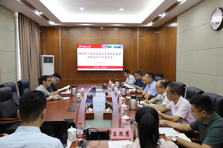 座谈会上,调研组组长黄中阳介绍了本次调研的背景和相关要求,齐俊斌代表学校党委对调研组的到来表示热烈欢迎。组织部负责人汇报了学校基层党建工作的基本情况,与会人员围绕新时代广西高校党建“双创”培育创建、学习贯彻《中国共产党普通高等学校基层党组织工作条例》、基层党建“五基三化”攻坚年行动计划、发展党员工作、清廉学校建设、坚持和完善高校党委领导下的校长负责制等方面进行了汇报和交流。黄中阳组长充分肯定了学校基层党建工作所取得的成绩,并对学校基层党建和清廉学校建设提出了指导意见。齐俊斌要求学校相关部门要提高政治站位,按照调研组反馈意见,认真研究,抓好落实,进一步推进“五基三化”攻坚年行动和广西党建工作示范高校培育创建工作,持续提升学校基层党建工作质量。