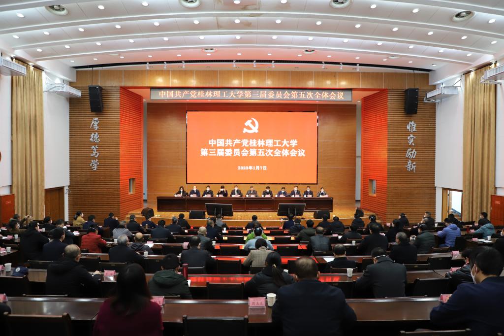 全会指出,今年是全面贯彻党的二十大精神的开局之年,做好2023年的工作意义重大、责任重大。全校上下要坚持以习近平新时代中国特色社会主义思想为指引,全面贯彻落实党的二十大精神,深入贯彻落实习近平总书记关于教育的重要论述和对广西系列重要讲话指示精神,完整、准确、全面贯彻新发展理念,全面贯彻落实党的教育方针,坚持立德树人根本任务,坚持党对学校工作的全面领导,坚持高质量发展战略定位,坚持深化综合改革,坚持全面依法治校,坚持全面从严治党,准确把握主要矛盾和中心任务,着力加强干部队伍、人才队伍建设,着力推进内涵建设和博士点申报,着力提升学校治理能力与治理现代化水平,着力构建和完善高质量人才培养体系,着力提升科技创新和社会服务能力,着力推进对外交流合作,着力增强师生的获得感幸福感安全感,奋力开创高水平理工大学建设发展新局面,为建设教育强国、科技强国、人才强国和凝心聚力建设壮美广西作出新的贡献。