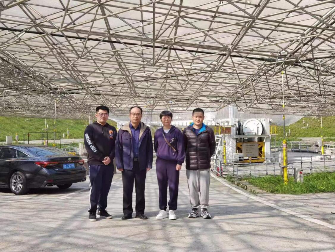 朱万旭(左二)与研究团队在“中国天眼”下合照(央广网发 受访者供图)