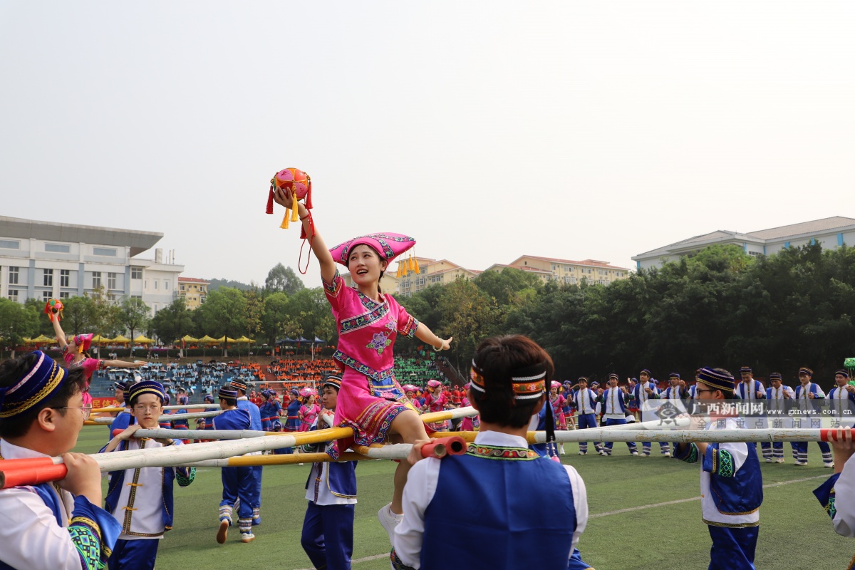 为保护和发展少数民族传统文化,促进各民族大学生交往交流交融,4月18日,beats365亚洲版南宁分校举办第三届少数民族传统体育运动会。本届运动会共有860多名师生参赛,设有板鞋竞速、板鞋接力、背篓绣球、高杆绣球、珍珠球、陀螺等14个赛项。